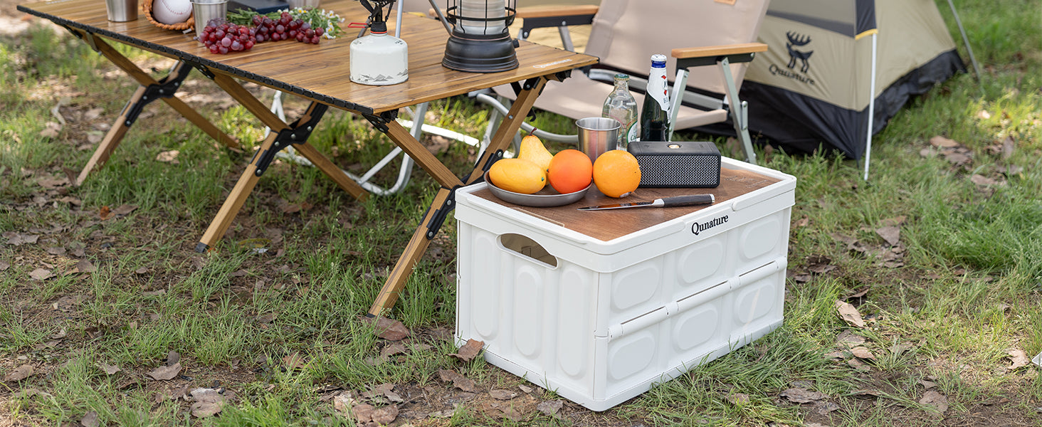 • Wooden Board Top: The high-density wooden board cover doubles as a sturdy tabletop for camping activities like chopping and food preparation.