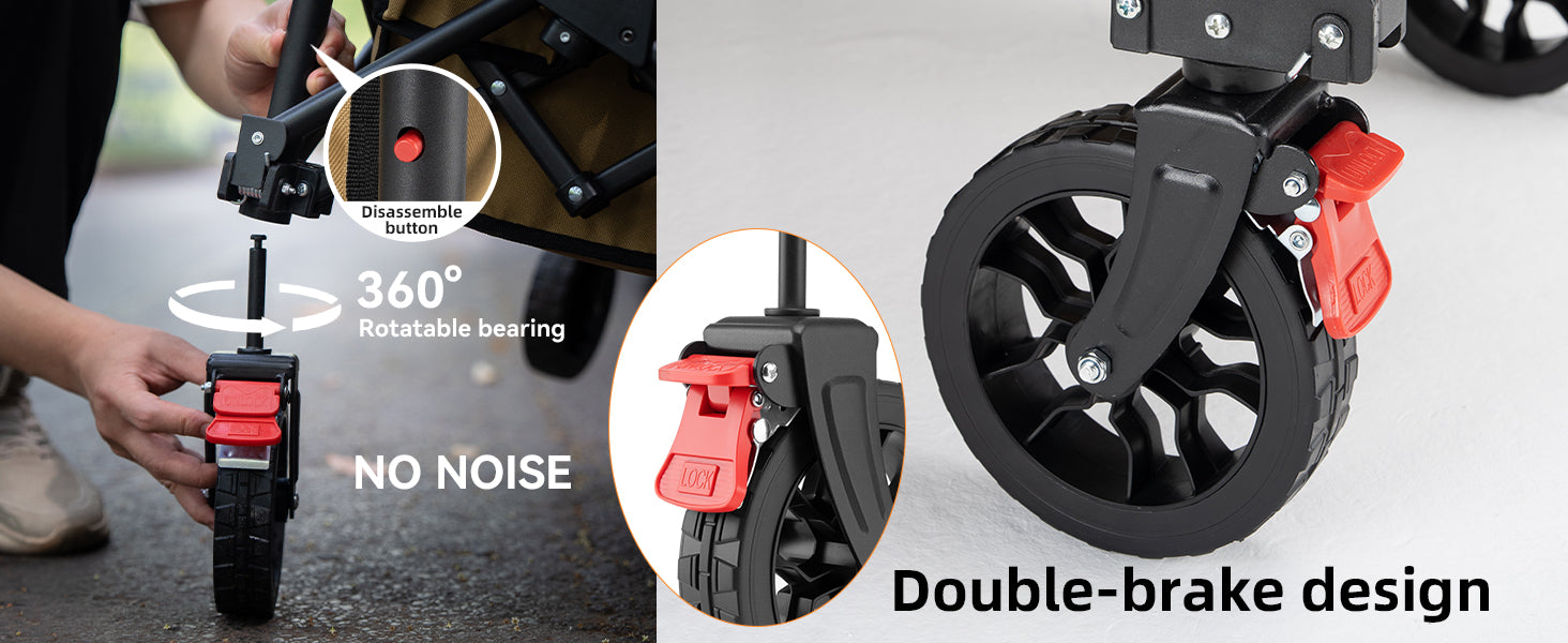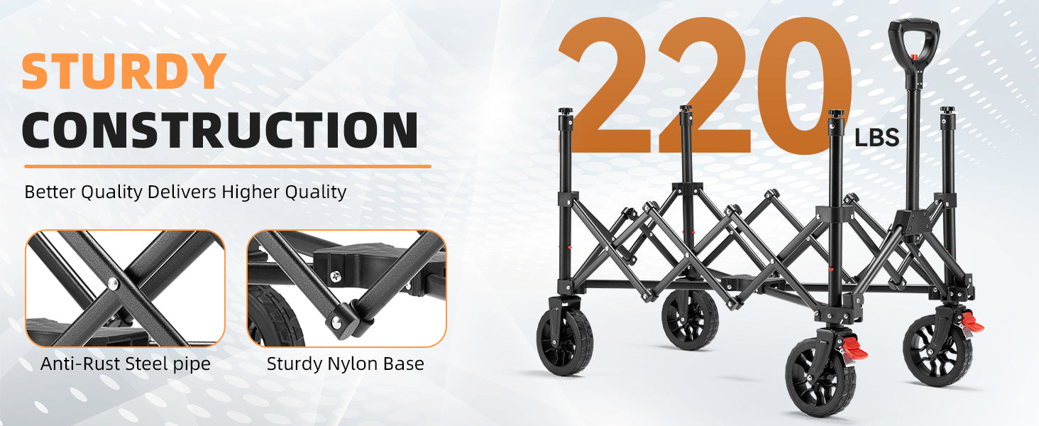 • Sturdy & Enduring: Thickened carbon steel frames and 600D Oxford fabric withstand significant weight and all-weather use. Wear-resistant PVC wheels would conquer all kinds of terrain.