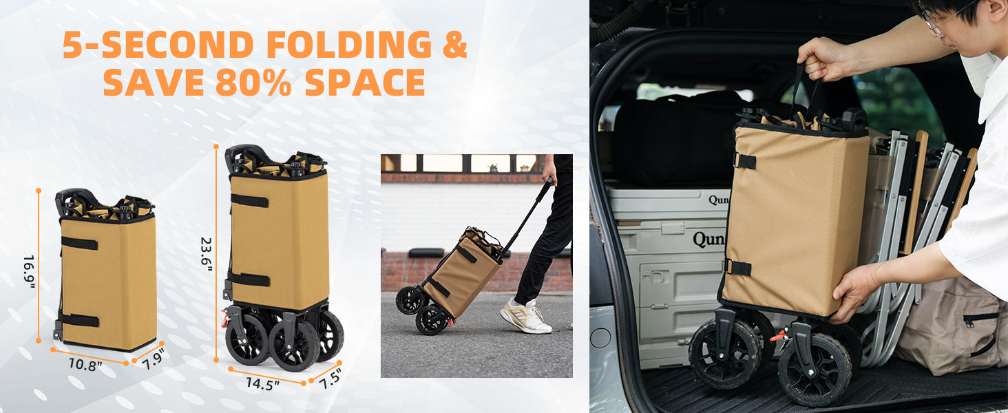 • Space-Saving Design: Weighing only 7.1kg, this compact foldable wagon easily fits into any car when folded (60cm*37cm*19cm), maximizing space for your journey.