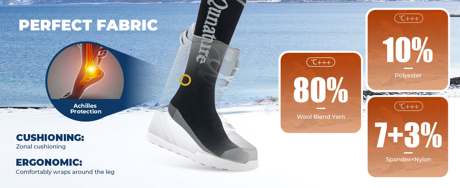 - Comfortable Fit: These ski socks have a lightweight thickness, ensuring a perfect fit with your ski boots. With cushioning in the shin, ankle, and foot areas, they reduce foot pain during sports or daily activities.