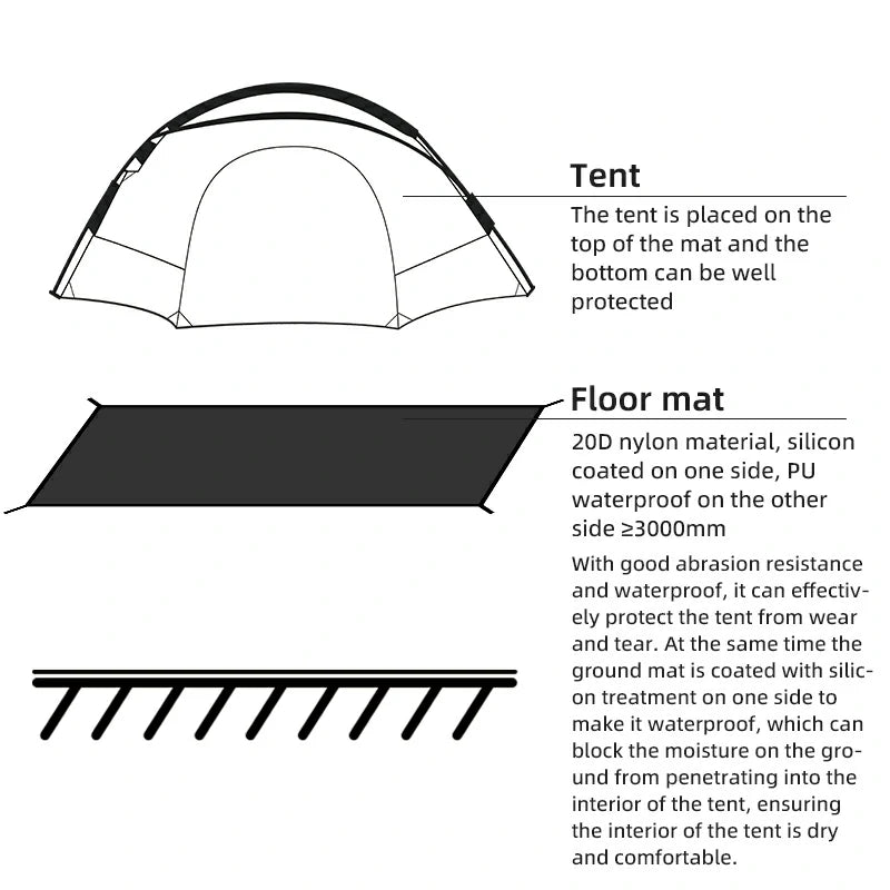 Versatile Use: Can be used as a tent base or standalone floor mat, offering excellent protection and insulation from the ground.