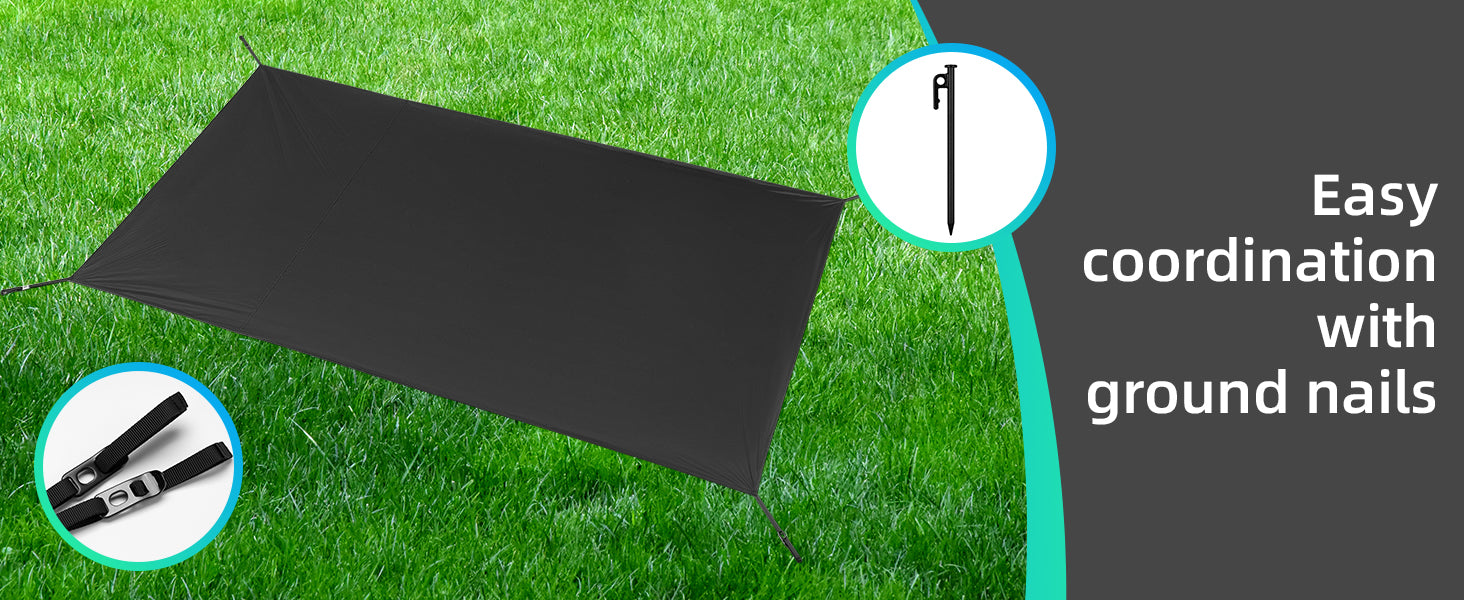 • Durable & Resilient: The mat is designed with four-corner snap fastenings, making it easy to secure with ground nails and providing stability on uneven terrain.
