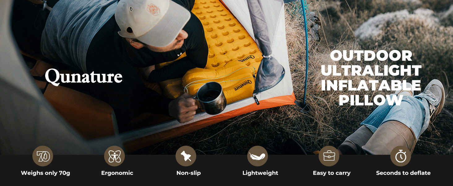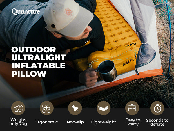 • Small Size: This inflatable camping pillow folds down to the size of a soda can. It fits easily into a backpack or pocket for easy access. It weighs only 70g.