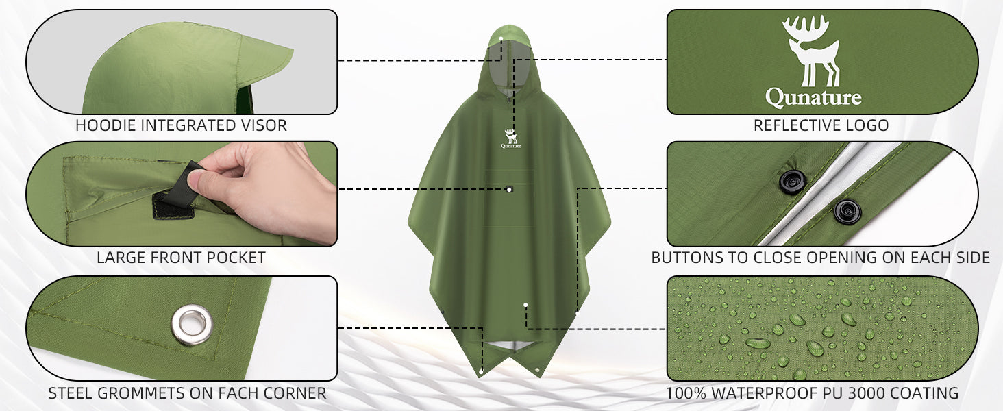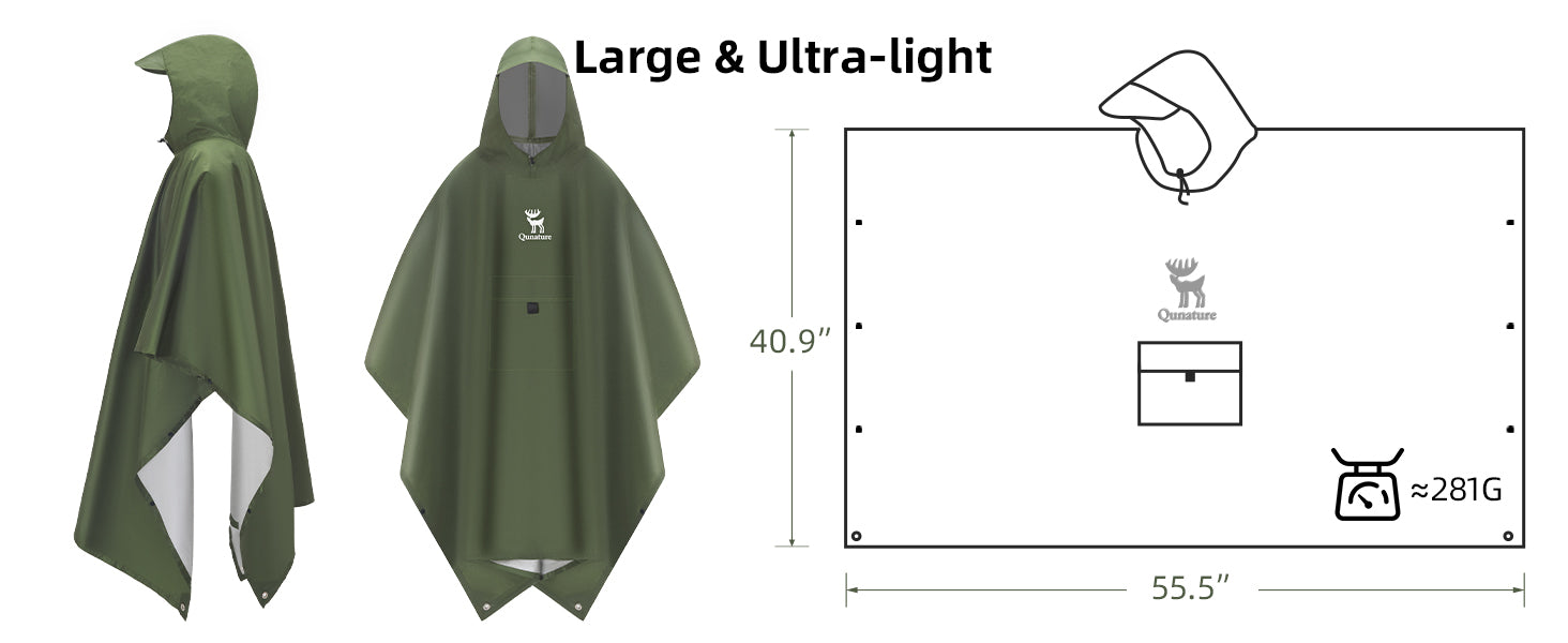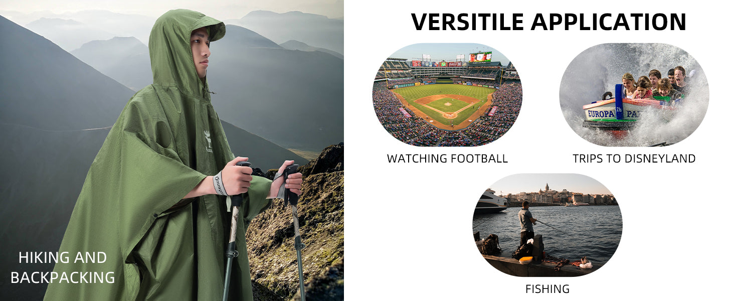 • 3-in-1 Outdoor Functionality: More than just a rain poncho, it doubles as a camping tarp or emergency sun shelter, giving you versatile protection for any outdoor situation.